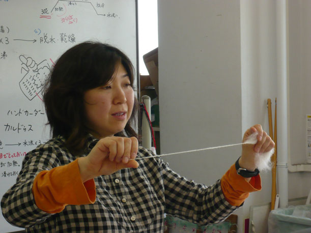 夏休み明けの6クールでは染色した羊毛を糸にし、そこから形作る課題です。