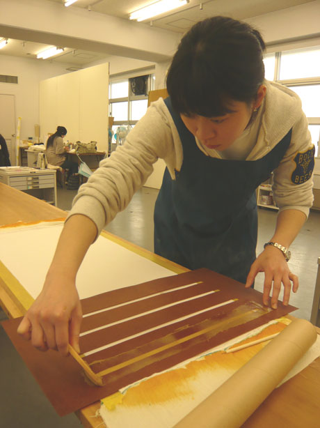 型付けが終わり、糊が乾いたら地入れという作業を行います。