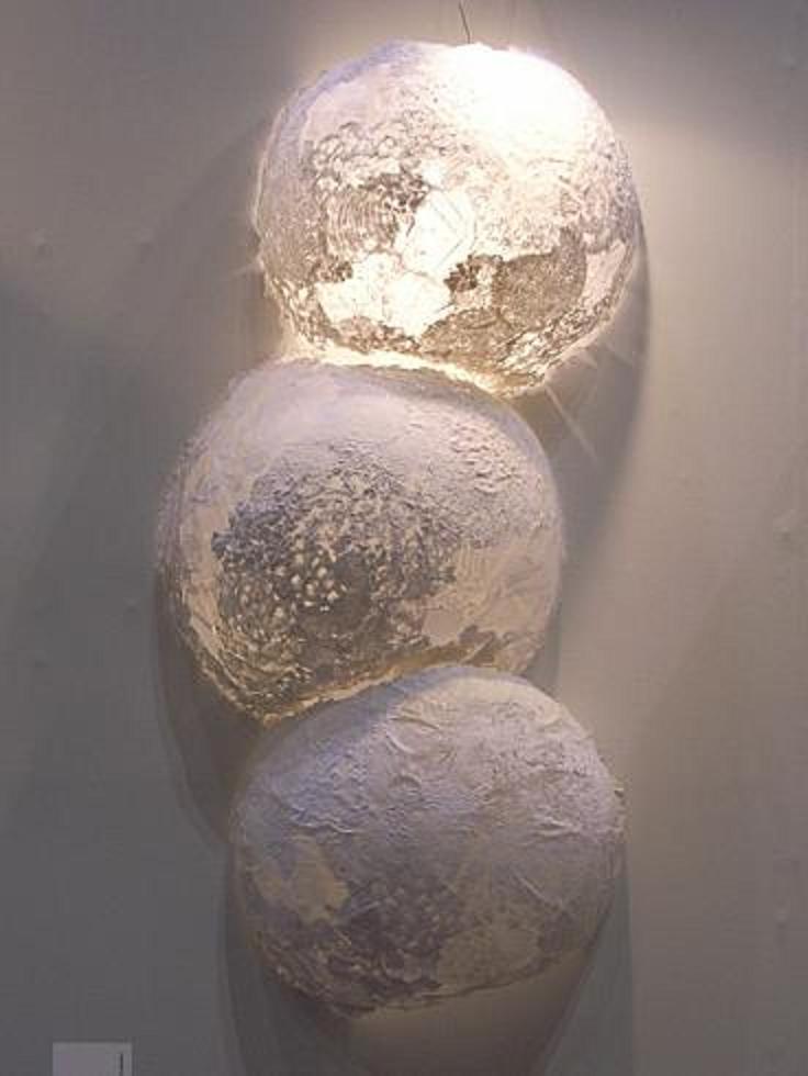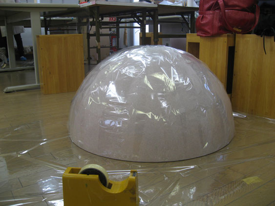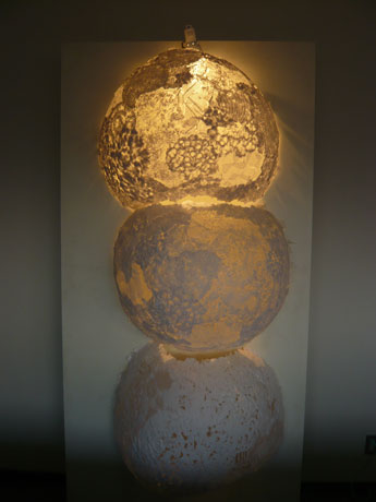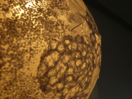 様々な丸いパーツを、あの謎の半球の形に沿うように繫ぎ合せた作品です。